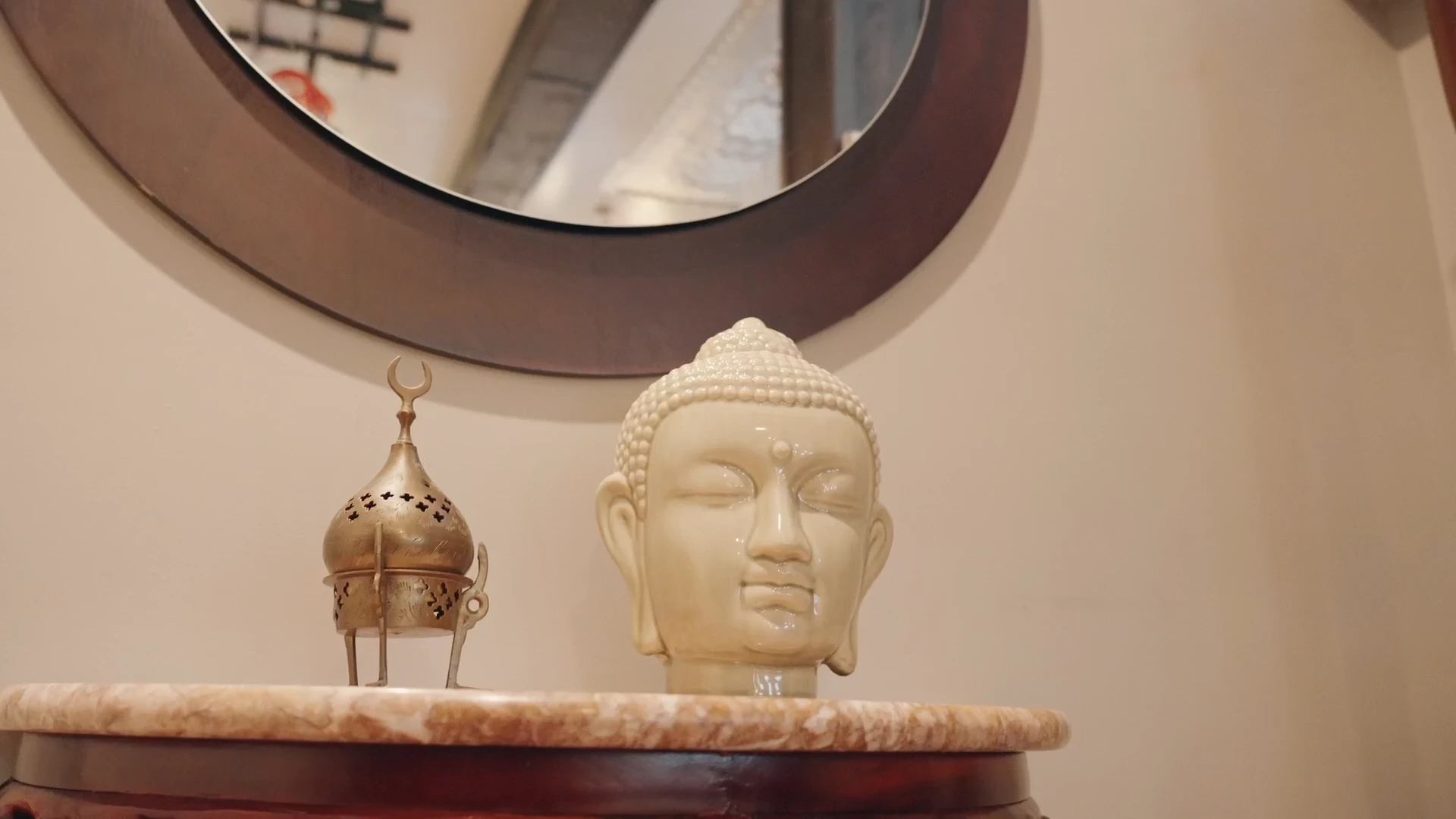 Зона отдыха у главного входа со старинным креслом, винтажным столиком и вешалкой для одежды